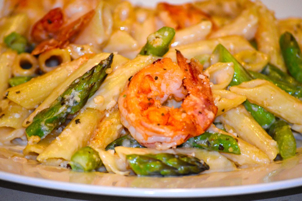 I have used barilla protein plus pasta, it has a good source of proteins made of wheat, lentil, chickpea, and peas. I like the Argentina red shrimp because its juicy, soft and of good size.