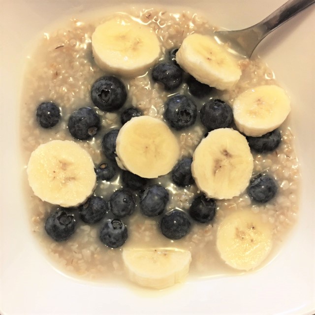 - Transfer the Oats to a bowl. Serve with milk, blueberries, banana and enjoy!