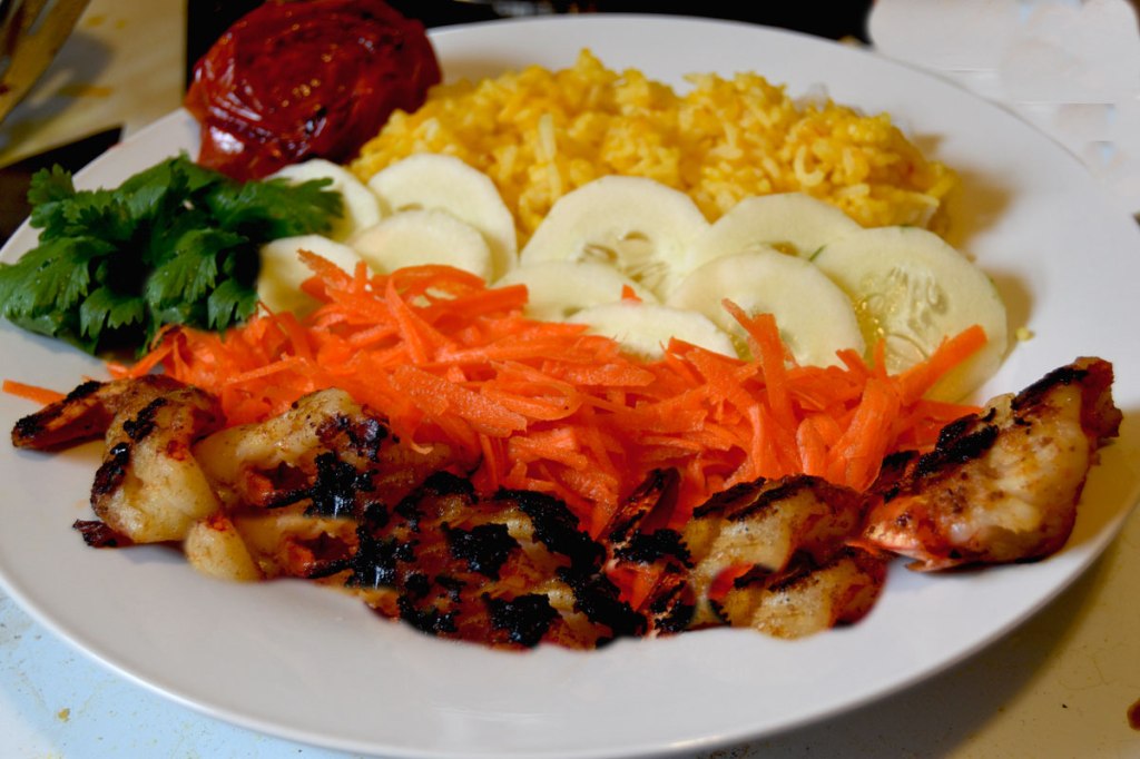 - Marinate the shrimp in a medium bowl with all the above ingredients for 1 hour in a refrigerator. The best way to cook long-grained basmati rice is to soak in water for 10 minutes before cooking. Add rice to the boiling water, when its half cooked drain the excess water and finally add salt and melted butter to the rice. Add saffron and whole milk in a small bowl and keep it aside for five minutes. Mix saffron milk to the rice.